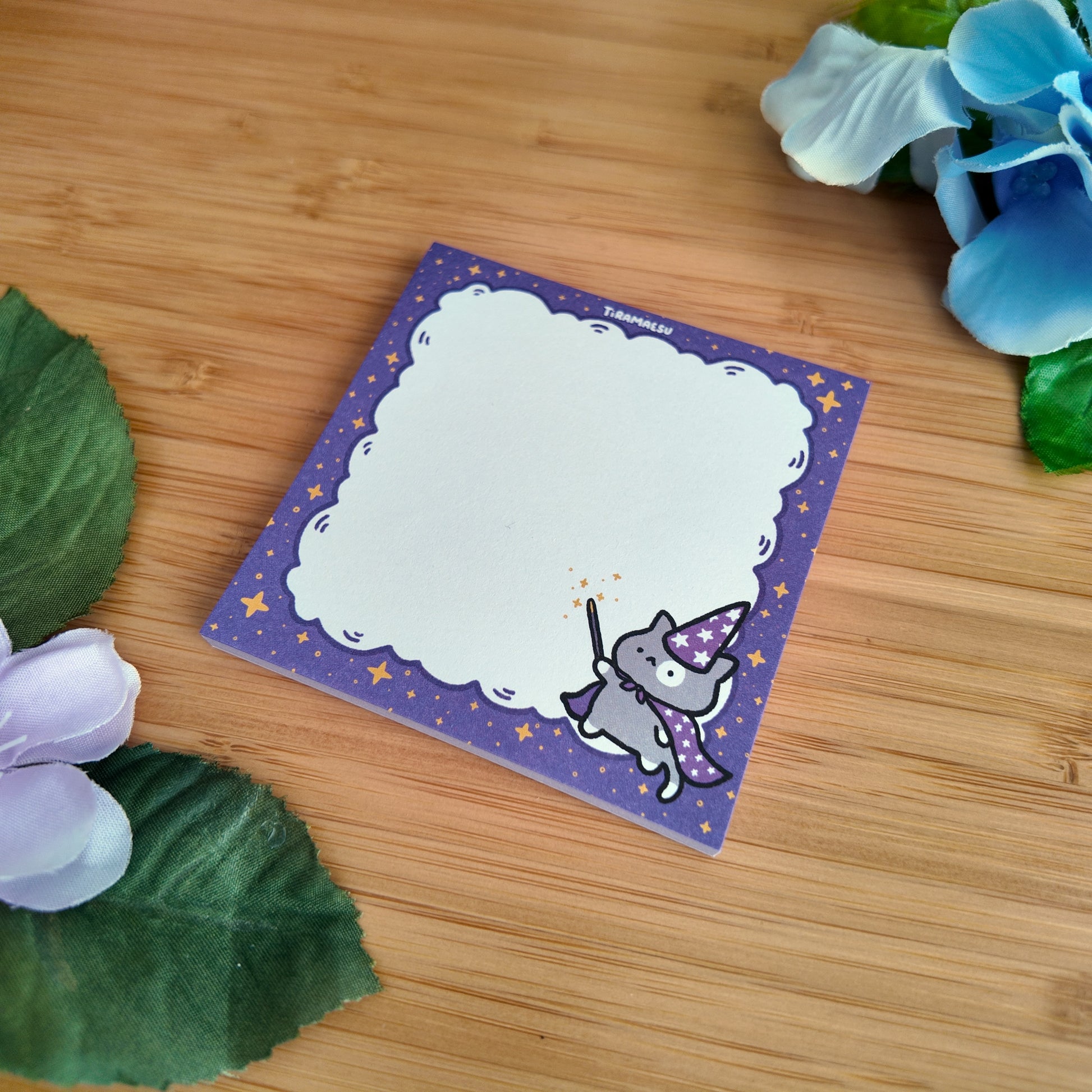 Add a dash of magic to your notes with this magician cat-themed sticky notes! Measuring 3x3 inches and featuring 50 sheets, this whimsical sticky note pad features an adorable magician cat. It's perfect for jotting down reminders, to-do lists, or just doodling magical things. Bring a playful and enchanting touch to your workspace with these charming sticky notes. Works as a great gift for any stationery lovers.