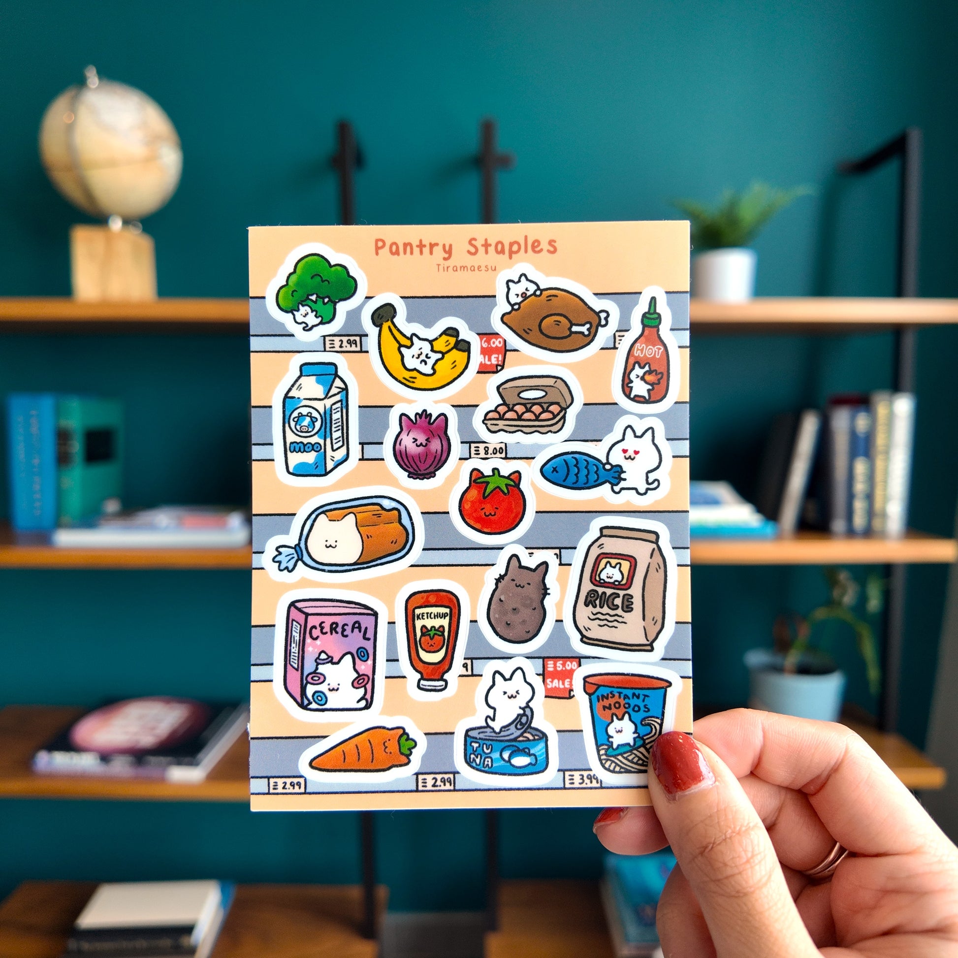 Do you like cute food stickers? This pantry staples sticker sheet is perfect for you! The sticker sheet features a lot of must-have pantry items for the home. Decorate your notebook or journal with these cute deco stickers!