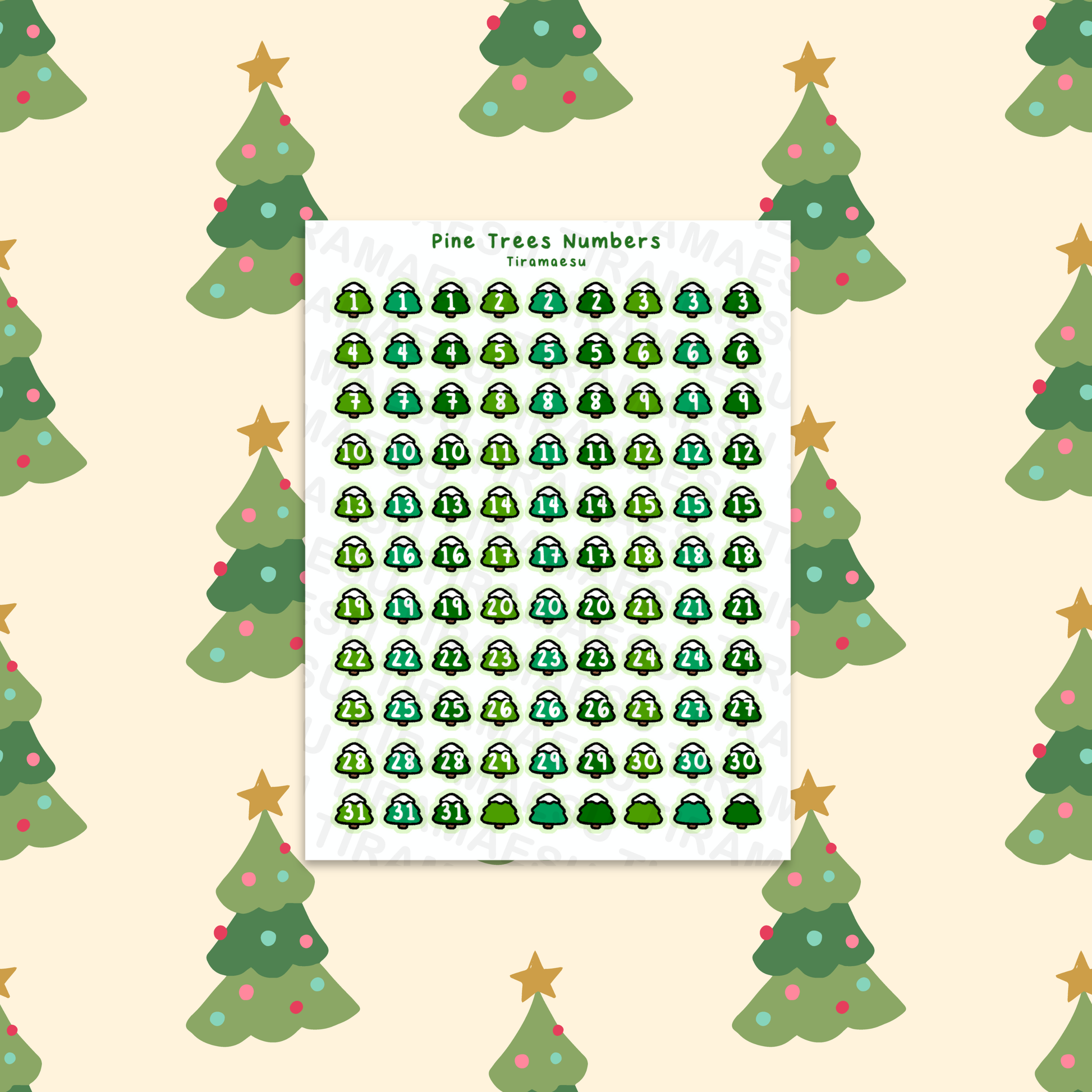 Pine Trees Numbers Sticker Sheet