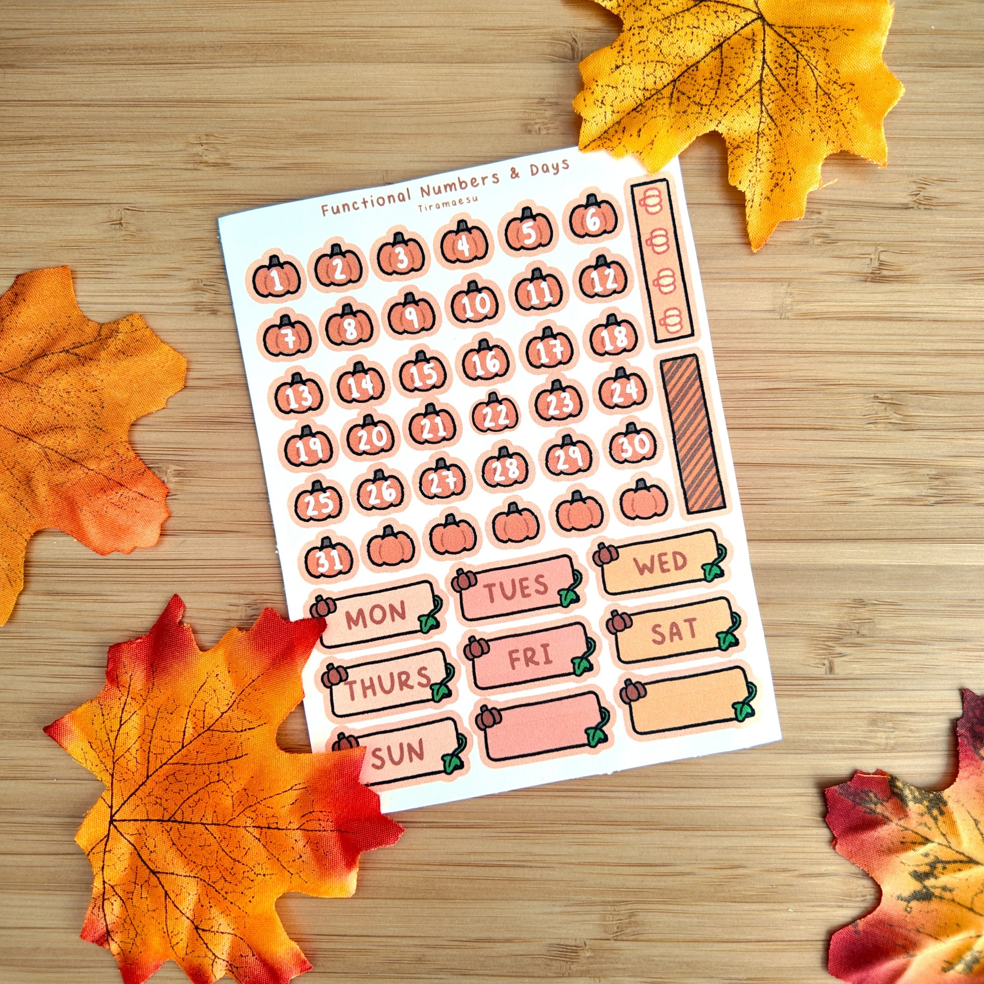 Celebrate the fall season with Pumpkin Planner Sticker Sheets! Choose from the Numbers and Days sheet, the Labels and Boxes sheet, or both to add cute, pumpkin-themed functional stickers to your planner. Perfect for organizing your schedule while bringing a cozy autumn touch to your planner spread!